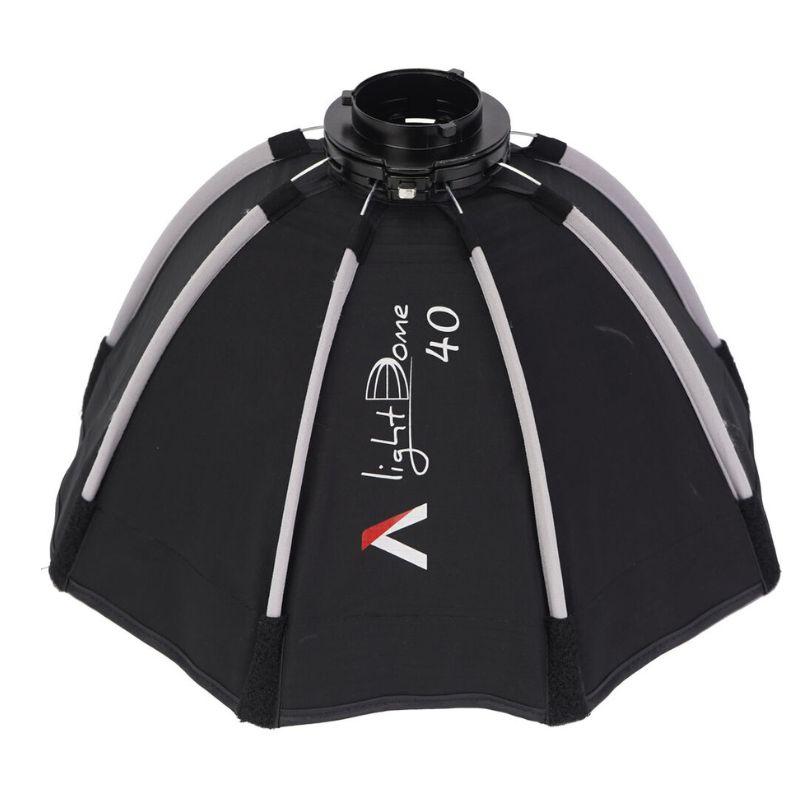 O domo de luz de oito lados Aputure STORM 80c com grade transforma a saída de luz do seu monolight LED STORM 80c em uma luz de área ultra suave, banhando seu objeto com luz difusa.