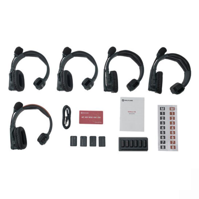 O sistema de intercomunicação global Solidcom SE 5S da Hollyland, com fones de ouvido mono com cancelamento de ruído e capacidade para até cinco pessoas, oferece às equipes de produção de pequeno a médio porte uma solução de comunicação poderosa e econômica. Esta configuração inclui um fone de ouvido mono principal e quatro fones de ouvido mono remotos. Operando na banda de frequência de 2,4 GHz, o sistema possui um design leve, cancelamento de ruído ambiente, resistência à água e ao vento e bateria de longa duração, permitindo que os membros da equipe colaborem com eficácia em diversos ambientes, desde produções de vídeo comerciais até operações marítimas. O sistema suporta até cinco usuários simultaneamente, portanto, esta configuração não pode ser expandida com fones de ouvido remotos adicionais.
