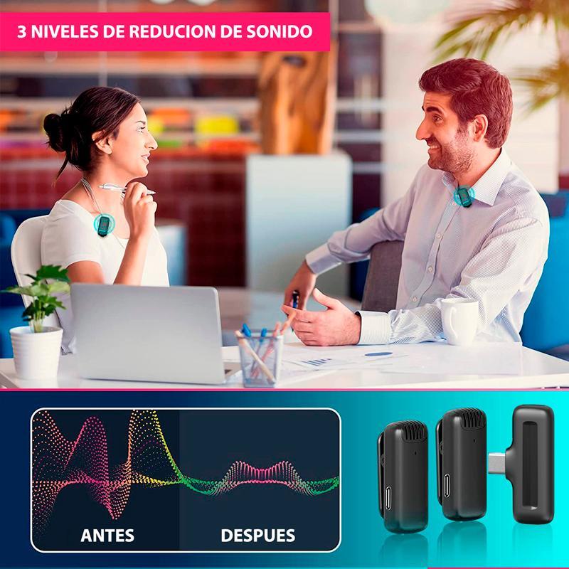 O sistema sem fio possui uma caixa de carregamento que permite carregar o transmissor e o receptor. É compatível com portas Tipo C