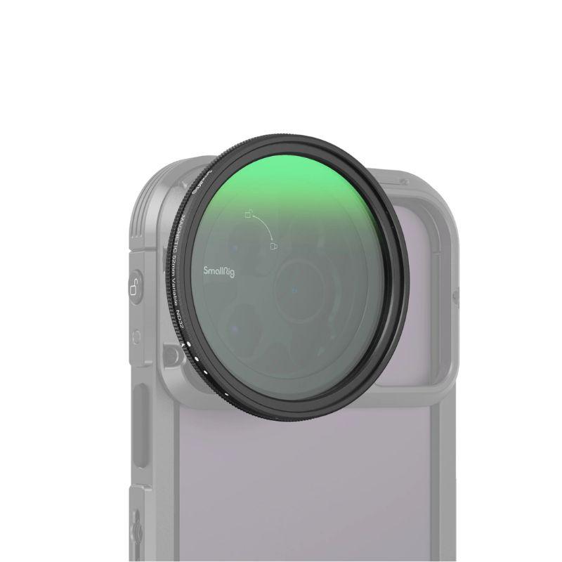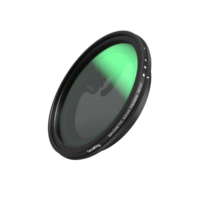 O kit de filtro VND acoplável SmallRig ND2-ND32 (1-5 pontos) com adaptador de filtro de montagem M de 52 mm 4386 é um kit de filtro VND que inclui um filtro e um adaptador de montagem M magnético.
