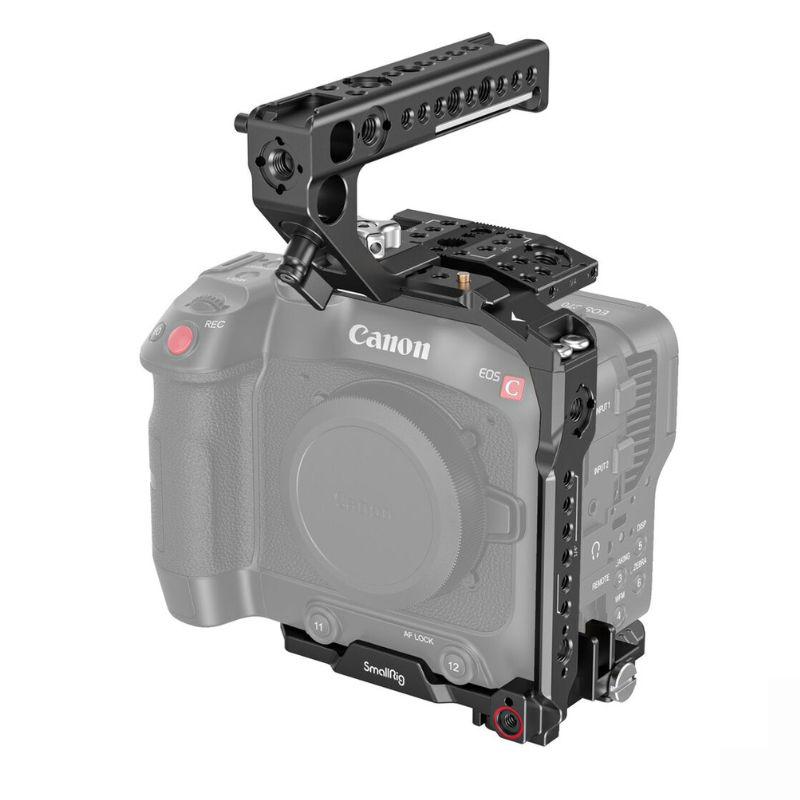 Proteja sua Canon C70 e amplie as opções de montagem do seu sistema de câmera com este kit de gaiola para câmera Canon EOS C70 da SmallRig. A gaiola de alumínio, com contornos que se adaptam ao formato da câmera, permite acesso à empunhadura e aos botões originais, e a alça superior de alumínio estilo NATO oferece múltiplas roscas para acessórios. Ela pode ser montada diretamente nos estabilizadores de gimbal DJI RS 2 e RSC 2, bem como em qualquer tripé tipo Arca (após a remoção da placa de base estendida), permitindo que você alterne rapidamente entre as configurações de câmera na mão, estabilizador e tripé.