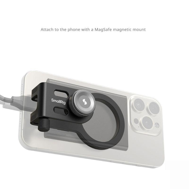 Fixe seu SSD com segurança à sua câmera, smartphone ou gaiola com este suporte universal 2 em 1 MagSafe/Sapata Fria da SmallRig. Este suporte leve possui uma presilha com mola que se ajusta para acomodar SSDs de 0,3 a 0,6 polegadas de espessura, como o Samsung T9, T7 ou T7 Shield, em uma sapata de smartphone ou câmera/gaiola.