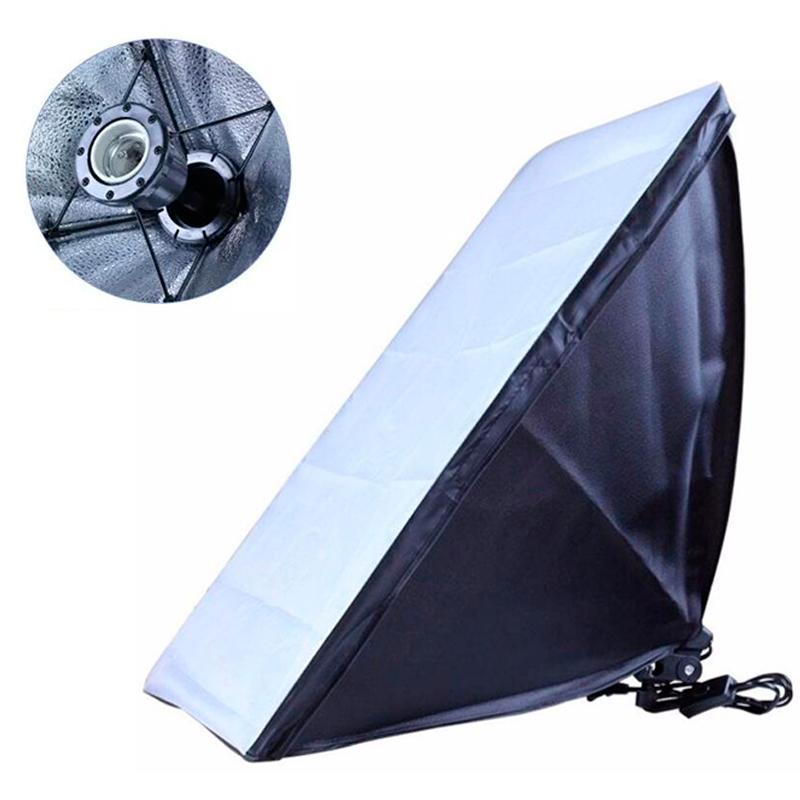 Esta Softbox E27 de 50x70cm é ideal para fotografia e filmagem em estúdio. Possui soquete para lâmpadas E27, botão liga/desliga no cabo, superfície interna prateada brilhante para refletir a luz e pano difusor para suavizar a luz emitida. Entrada de energia para uma lâmpada fluorescente